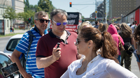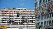 fasadah pa so ogromne LED stenske plošče. Ves dan, predvsem pa vso noč, se tukaj blešči in utripa. Sploh ni mogoče gledati stran. To je popolna zloraba javnega prostora v oglaševalne namene.«